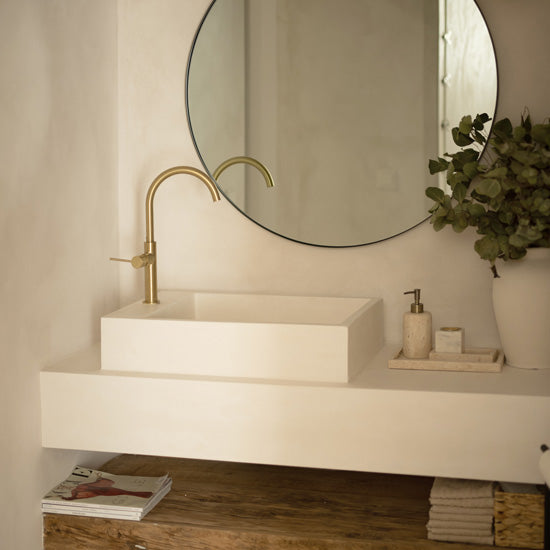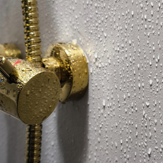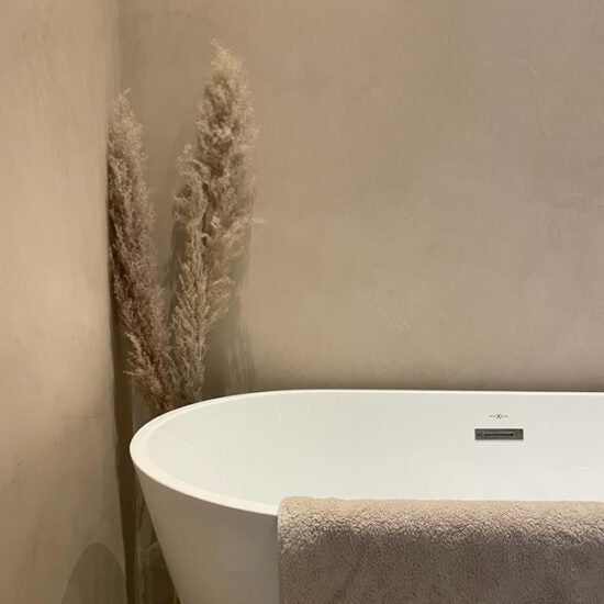 Creating a shower area in the bathroom requires special attention, especially when it comes to protection against moisture. In wet zones such as the shower, it is essential to use materials that effectively guard against water exposure. For these applications, we recommend bathroom microcement, HydroFest-a material that does not require full waterproofing, only the use of waterproofing tapes at wall joints, wall-to-floor connections, and around the drain. The floor and wall in the shower, finished with water-resistant HydroFest microcement, are both durable and visually appealing.