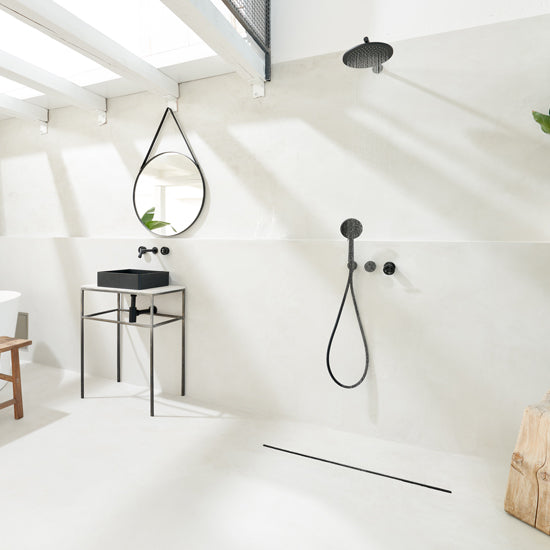 Finally, you should always make sure that the product you choose to achieve a concrete effect is water-resistant. If it isn’t, it is most likely not microcement but another concrete-look product (decorative concrete), and we strongly advise against using it in the bathroom, no matter how attractive the price may be.