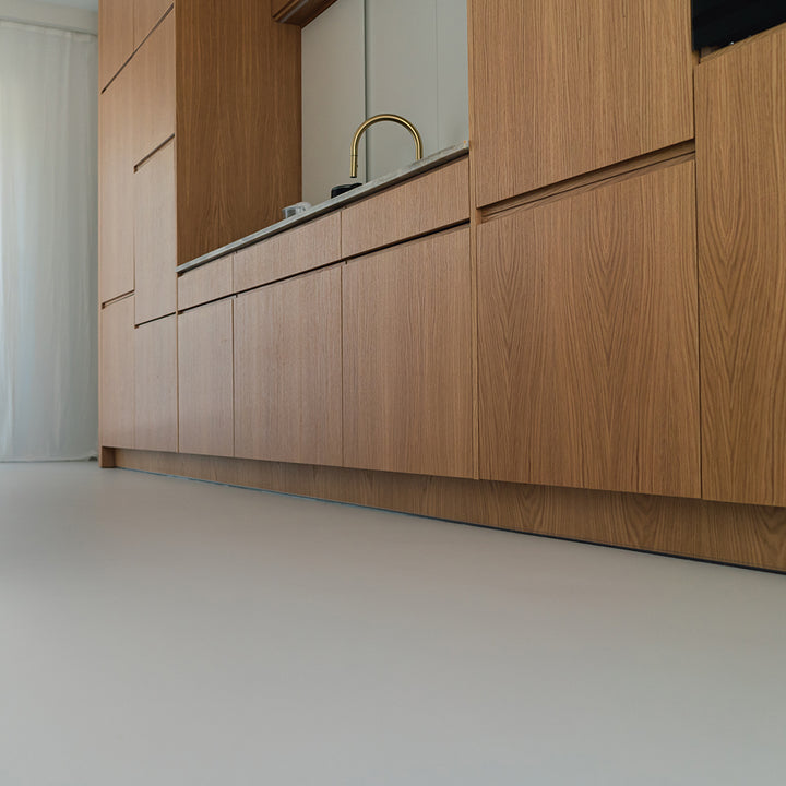 Titan ist ein System auf Epoxidharzbasis, was es extrem hart und kratzfest macht – viel mehr als Standard-Mikrozementen. Lesen Sie Vergleich der Mikrozement-Systeme