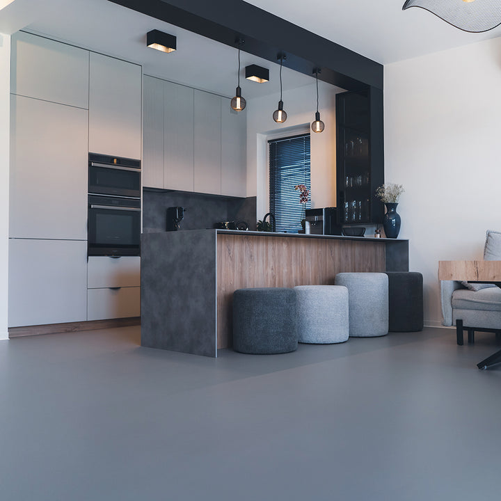 Das Set enthält alle Materialien, die für die Herstellung eines Mikrozementbodens mit einer Fläche von 10 m² erforderlich sind: Grundierung, Mikrozement und Lack zur Imprägnierung des Mikrozements.
